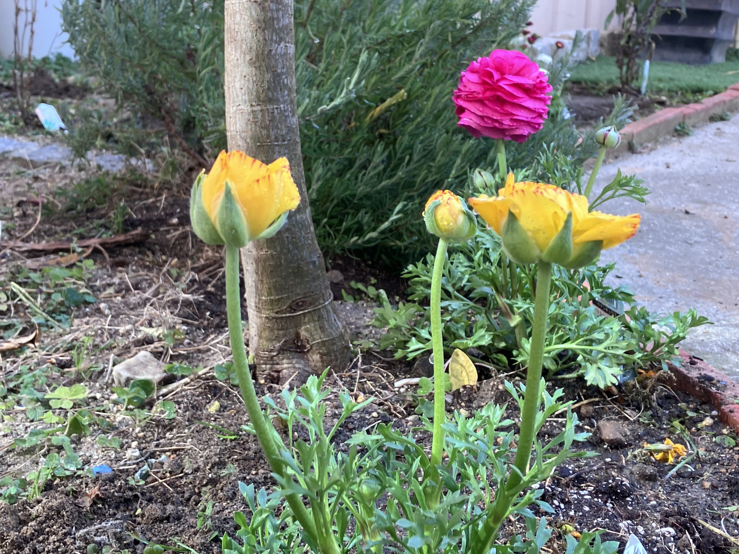 春または秋のはじまりに一年草のジャーマンカモミールのハーブのたねを、庭やプランターにまくと、いつの間にか成長して白色のかれんな花をつけています。